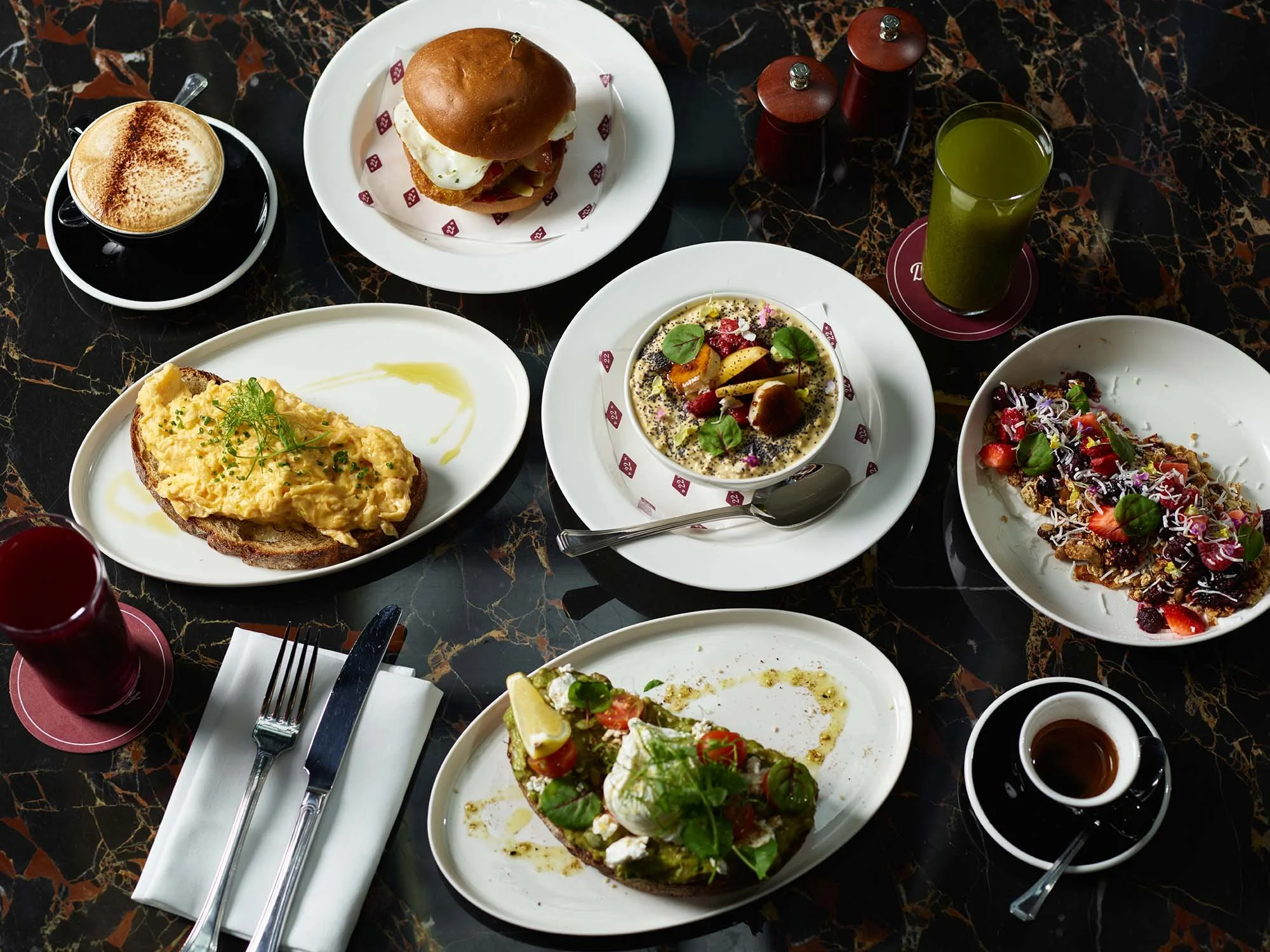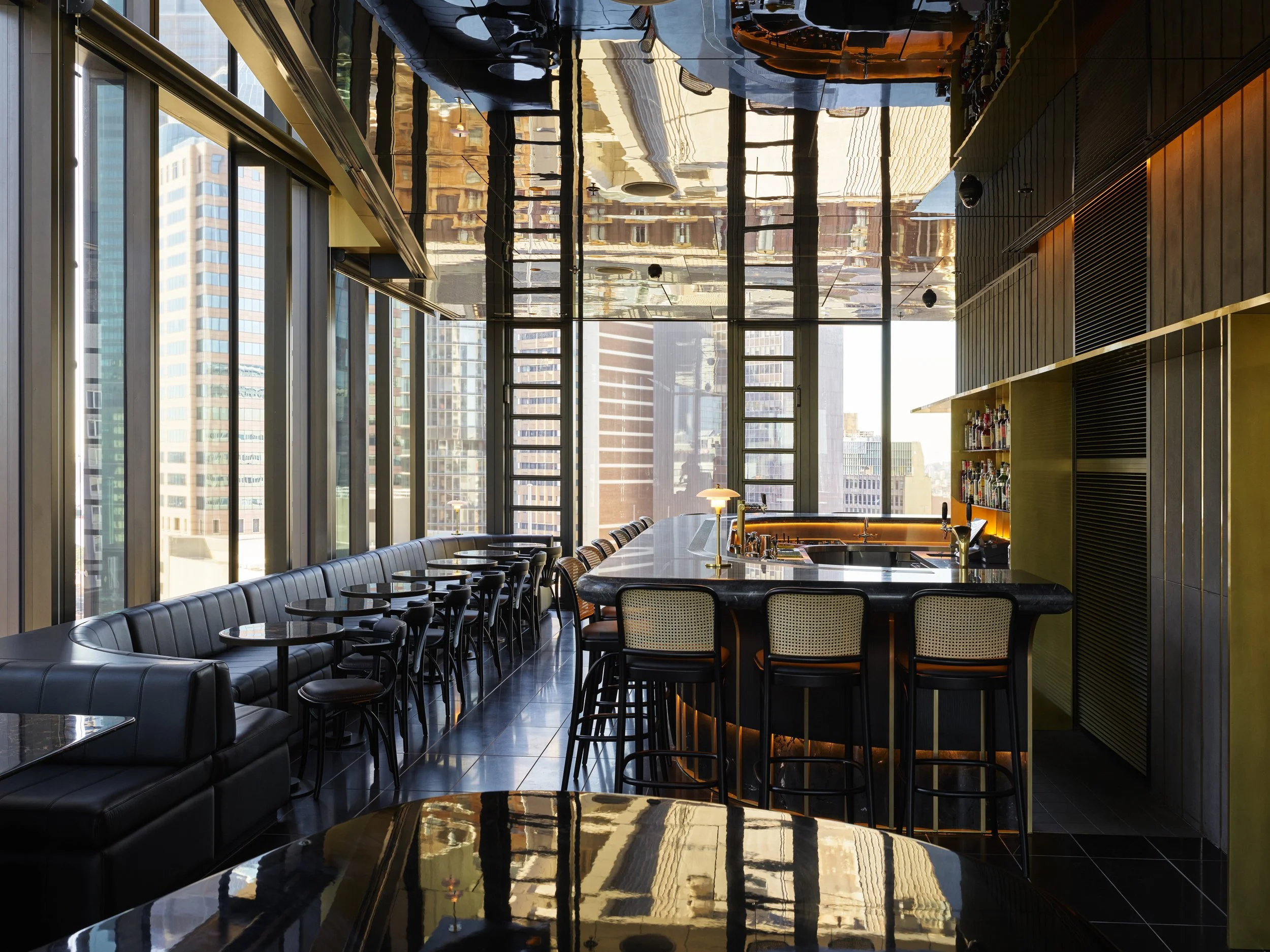 High above Sydney’s skyline lies the best cocktail in town. A balance of mid-century decadence and modern details; with gold-veined marble, intimate tables and timeless service ready to greet you as you step off the curved brass staircase.